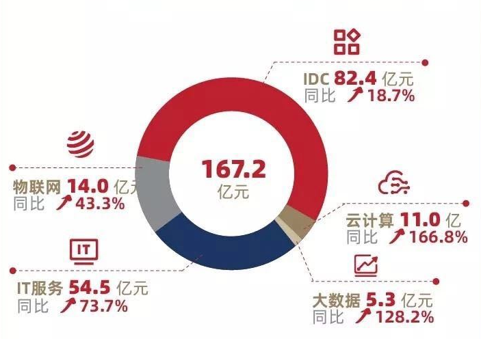 中国联通创新业务增长势头强劲,产业互联网收入实现快速突破,其中物联网收入达14亿元,同比增长43.3%(如图2所示)。